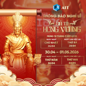 Nhằm tạo điều kiện thuận lợi cho Quý Khách hàng và Đối tác trong việc sắp xếp kế hoạch làm việc, AIT Innovation xin trân trọng thông báo lịch nghỉ lễ Giỗ Tổ Hùng Vương (10/3 Âm lịch) và Ngày Giải phóng miền Nam (30/4) – Quốc tế Lao động (1/5) năm 2026 như sau: